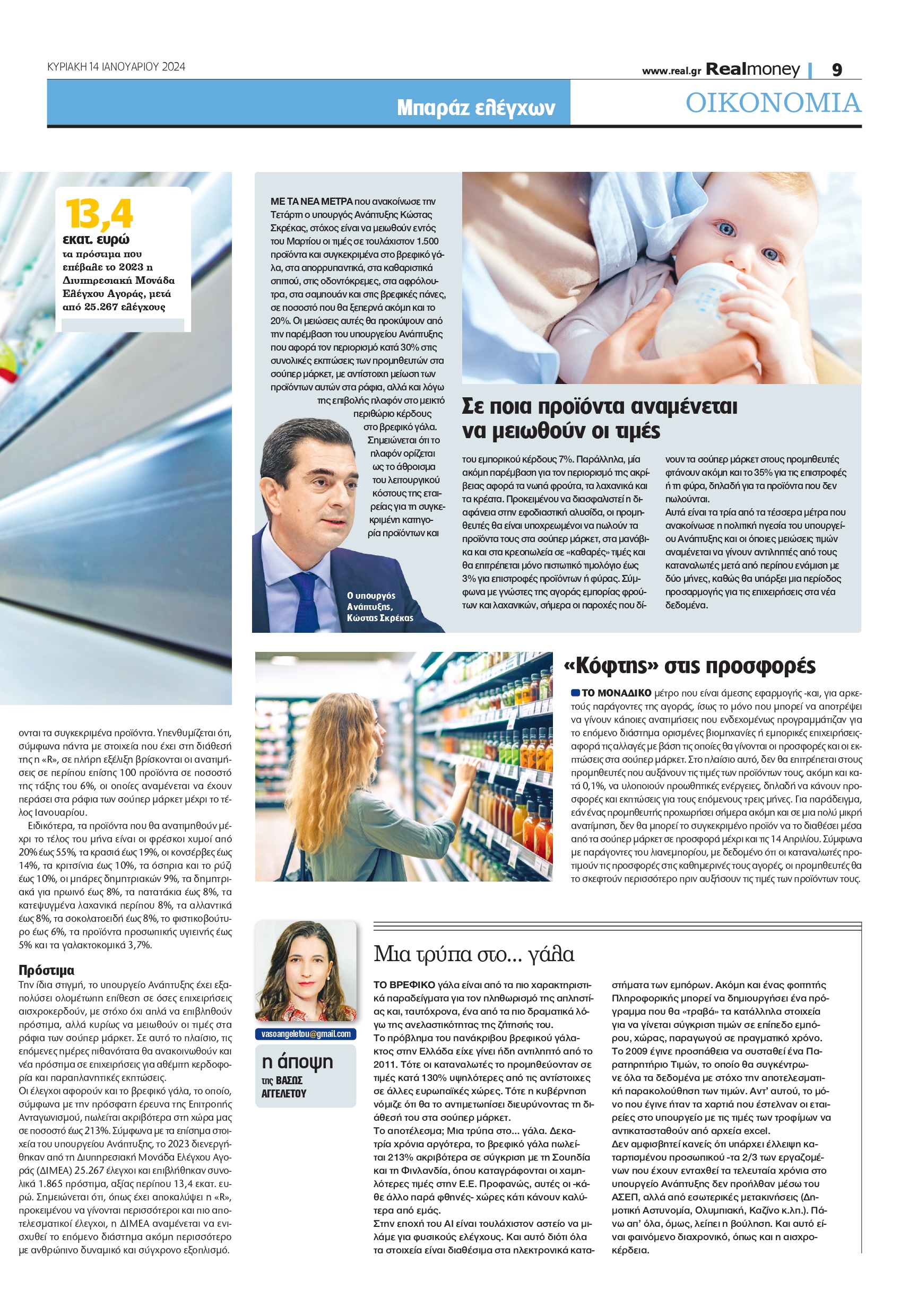 Την ίδια στιγμή, το υπουργείο Ανάπτυξης έχει εξαπολύσει ολομέτωπη επίθεση σε όσες επιχειρήσεις αισχροκερδούν, με στόχο όχι απλά να επιβληθούν πρόστιμα, αλλά κυρίως να μειωθούν οι τιμές στα ράφια των σούπερ μάρκετ. Σε αυτό το πλαίσιο, τις επόμενες ημέρες πιθανότατα θα ανακοινωθούν και νέα πρόστιμα σε επιχειρήσεις για αθέμιτη κερδοφορία και παραπλανητικές εκπτώσεις.