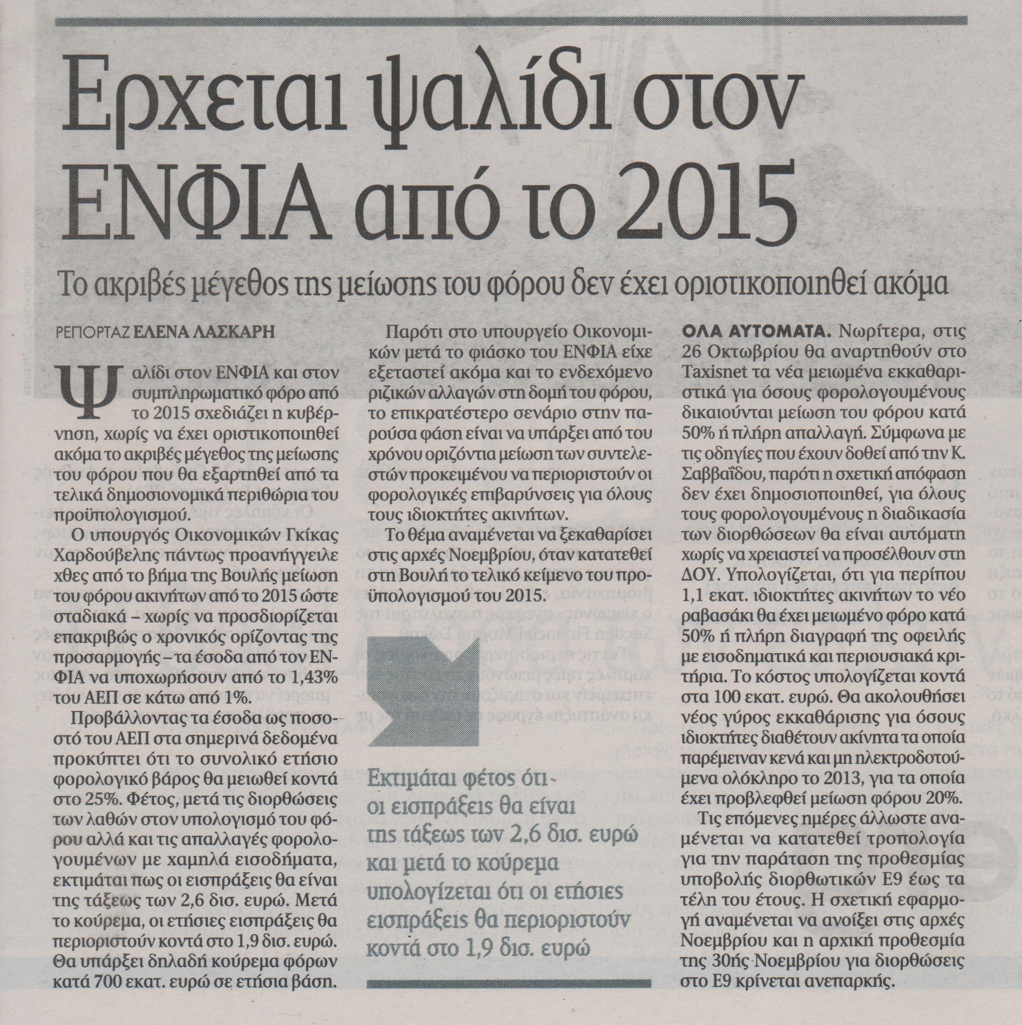 Έρχεται ψαλίδι στον ΕΝΦΙΑ από το 2015