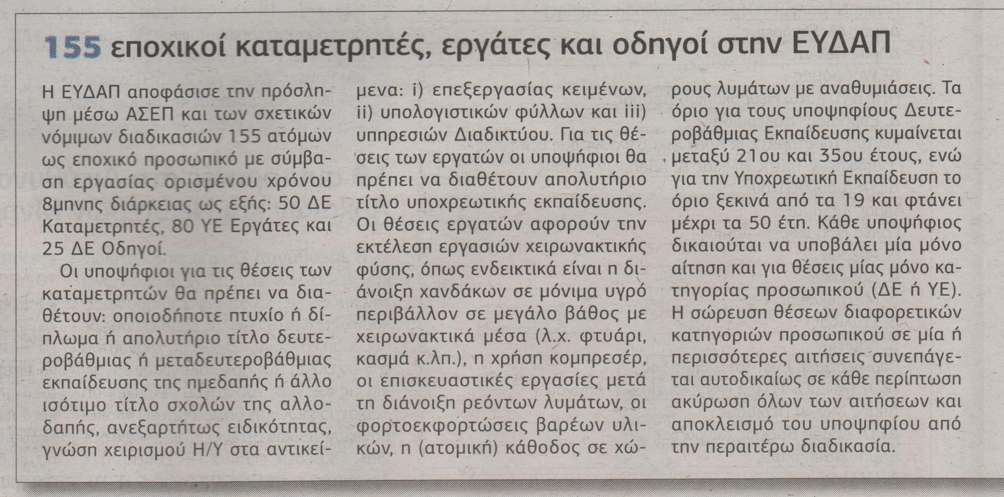 Οι προκηρύξεις θα ξεκινήσουν να δημοσιεύονται από τις αρχές Μαϊου. Ο Ελεύθερος Τύπος δημοσιεύει αναλυτικά τα προσόντα και τις ειδικότητες για κάθε προκήρυξη.