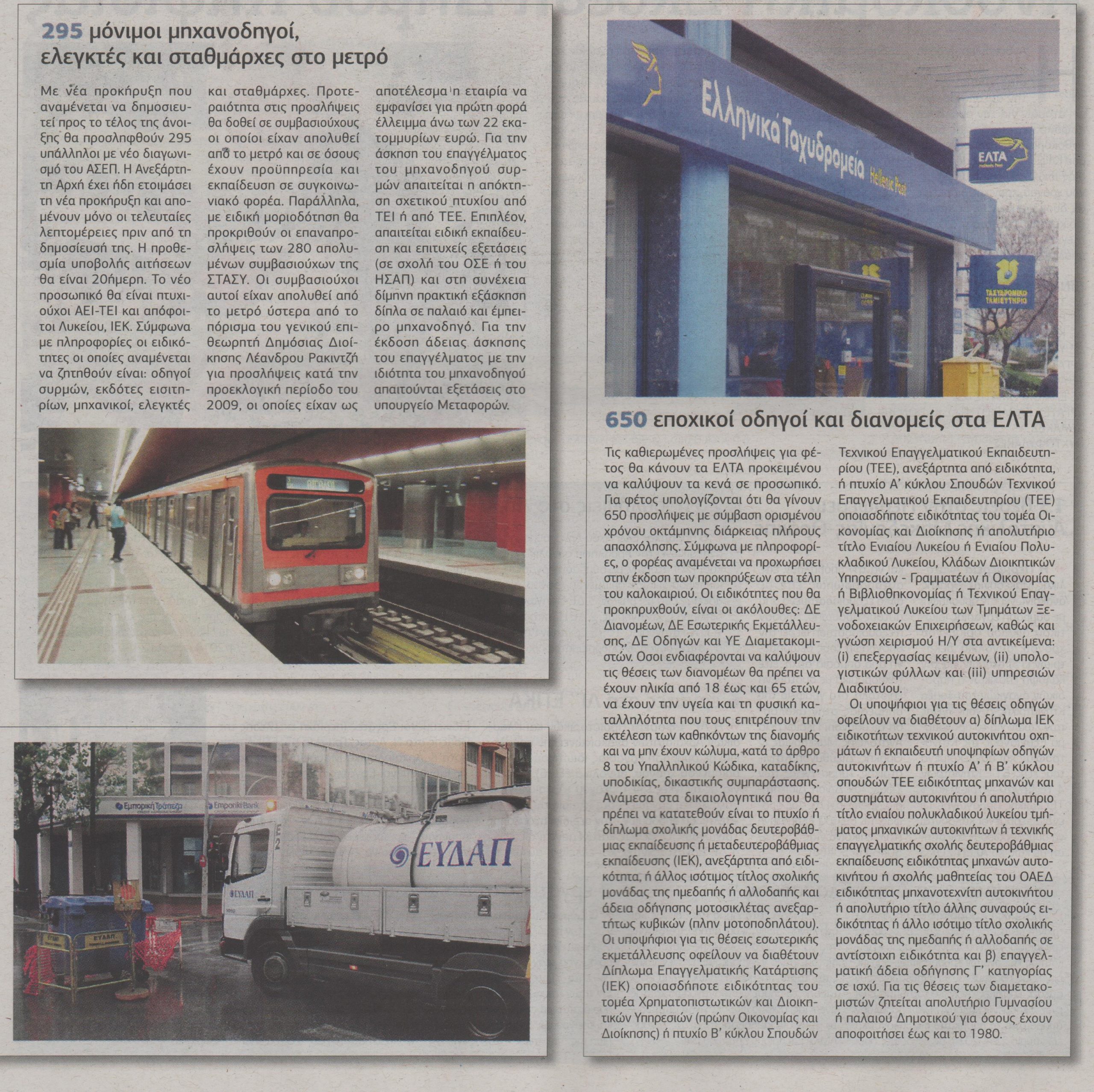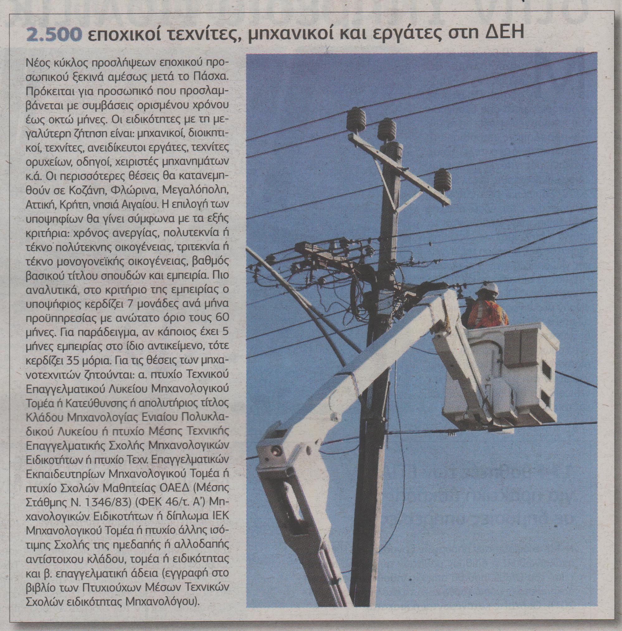 Μπαράζ προσλήψεων για εποχικό και μόνιμο προσωπικό αναμένεται μετά το Πάσχα στις ΔΕΚΟ. Οι ειδικότητες που βρίσκονται στην πρώτη γραμμή είναι: μηχανικοί, τεχνικοί, διοικητικοί, καταμετρητές, σταθμάρχες, μηχανοδηγοί κ.α.
