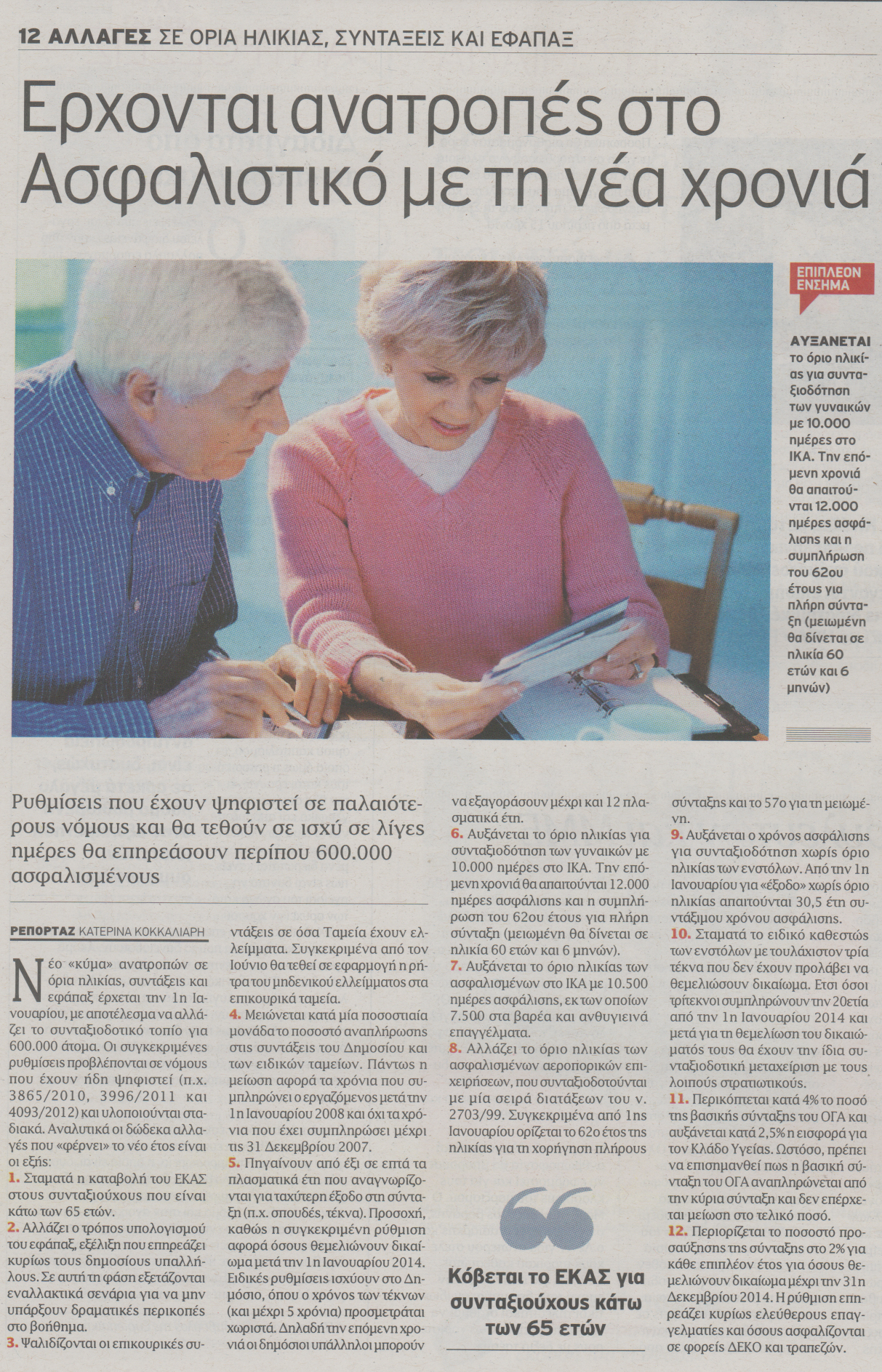 Νέο «κύμα» ανατροπών σε όρια ηλικίας, συντάξεις και εφάπαξ έρχεται την 1η Ιανουαρίου, με αποτέλεσμα να αλλάζει το συνταξιοδοτικό τοπίο για 600.000 άτομα.