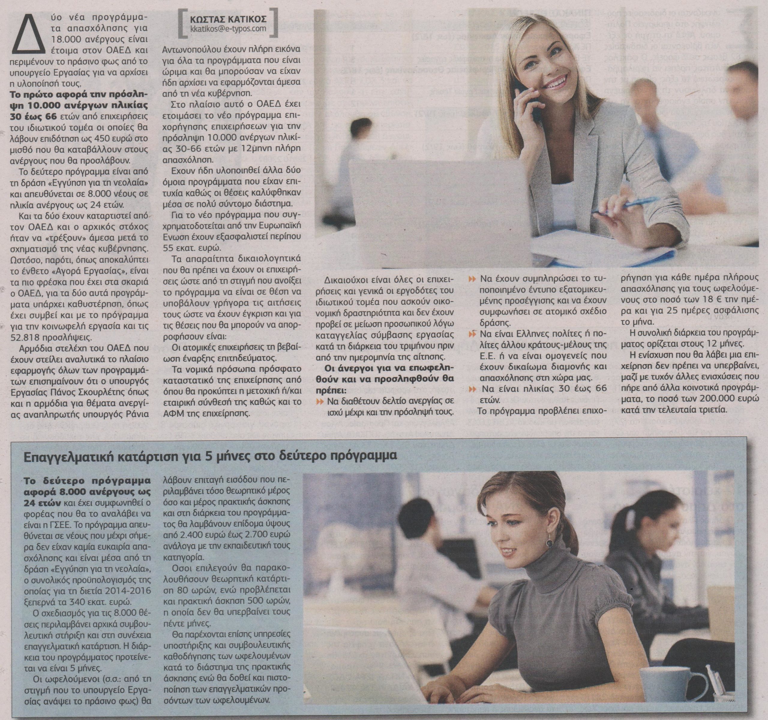 Έτοιμα 2 προγράμματα για 18.000 προσλήψεις ανέργων