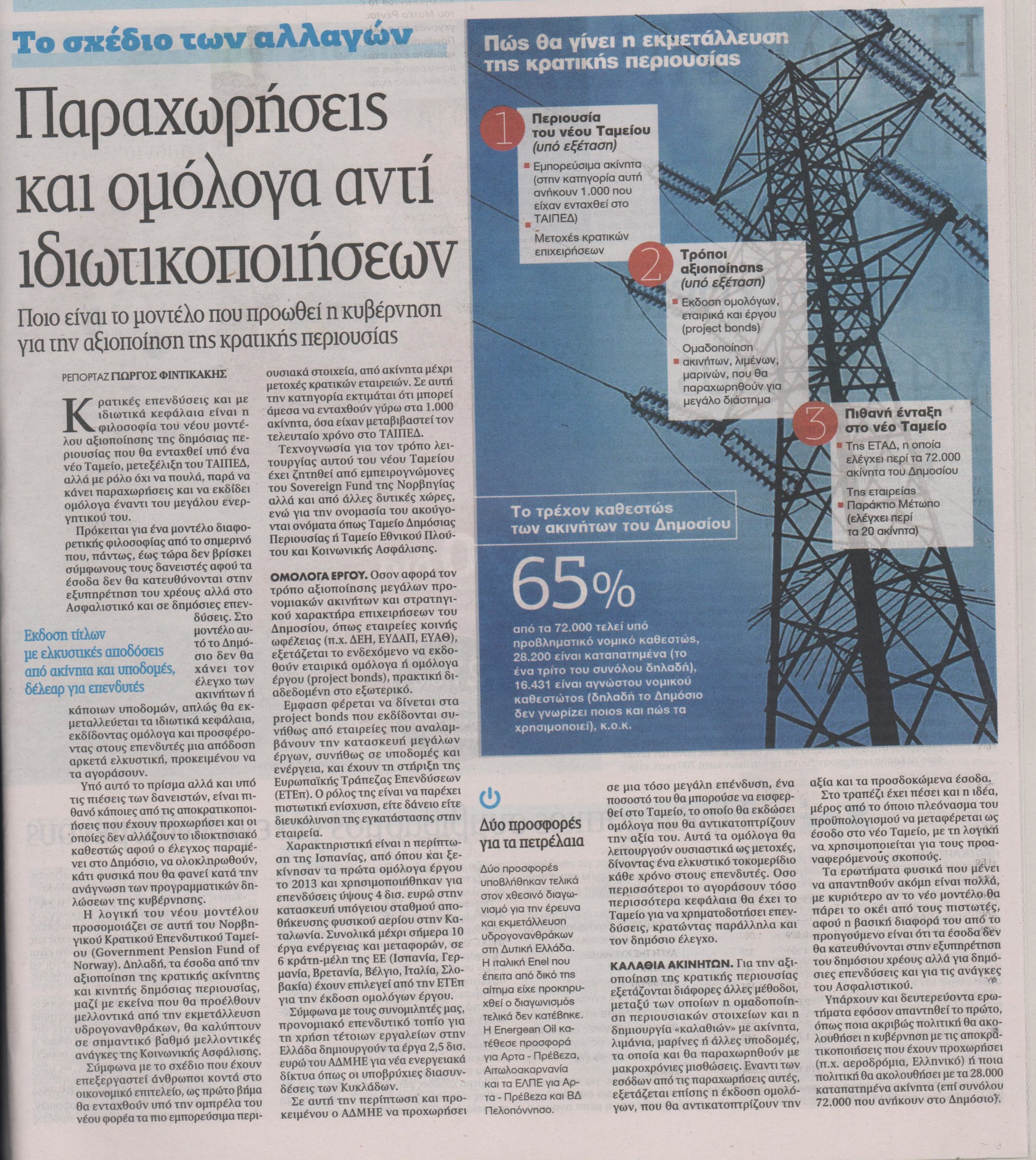 Κρατικές επενδύσεις και με ιδιωτικά κεφάλαια είναι η φιλοσοφία του νέου μοντέλου αξιοποίησης της δημόσιας περιουσίας που θα ενταχθεί υπό ένα νέο Ταμείο, μετεξέλιξη του ΤΑΙΠΕΔ, αλλά με ρόλο όχι να πουλά, παρά να κάνει παραχωρήσεις και να εκδίδει ομόλογα έναντι του μεγάλου ενεργητικού του.