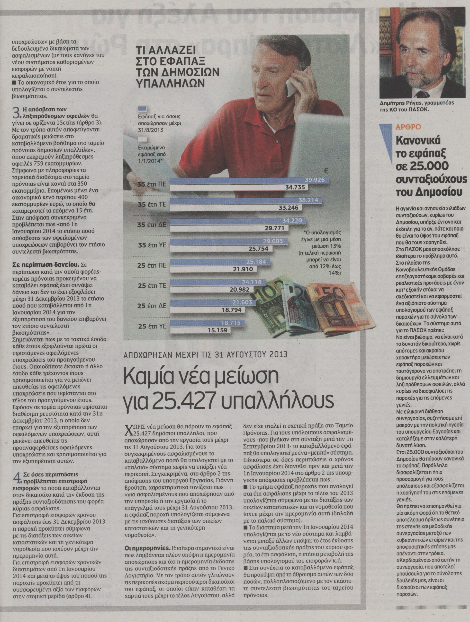 Εξαιρούνται από τις αλλαγές όσοι πρόλαβαν να καταθέσουν τα χαρτιά τους έως τις 31 Αυγούστου 2013, των οποίων το εφάπαξ θα υπολογιστεί με το παλαιό σύστημα και χωρίς νέα μείωση.