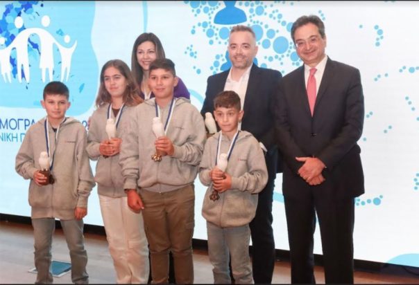 Ακολούθησε η βράβευση των μαθητών Δημοτικού της ομάδας ρομποτικής του ακριτικού νησιού του Αγίου Ευστρατίου, που συγκροτήθηκε από τον καθηγητή ρομποτικής, κ. Αντώνη Μακρή, στο πλαίσιο του προγράμματος της Eurobank Μπροστά για την Οικογένεια. Η ομάδα ρομποτικής συμμετείχε πρώτη φορά σε αγώνες και βραβεύθηκε, μεταξύ 11 χωρών, με το χρυσό μετάλλιο στο άθλημα της Τοξοβολίας, στην 3η Διεθνή Ολυμπιάδα Ρομποτικής, που διεξήχθη στην Κρήτη. Η βράβευση πραγματοποιήθηκε από την Υπουργό Κοινωνικής Συνοχής & Οικογένειας, κα Σοφία Ζαχαράκη και τον Διευθύνοντα Σύμβουλο της Eurobank, κ. Φωκίωνα Καραβία.