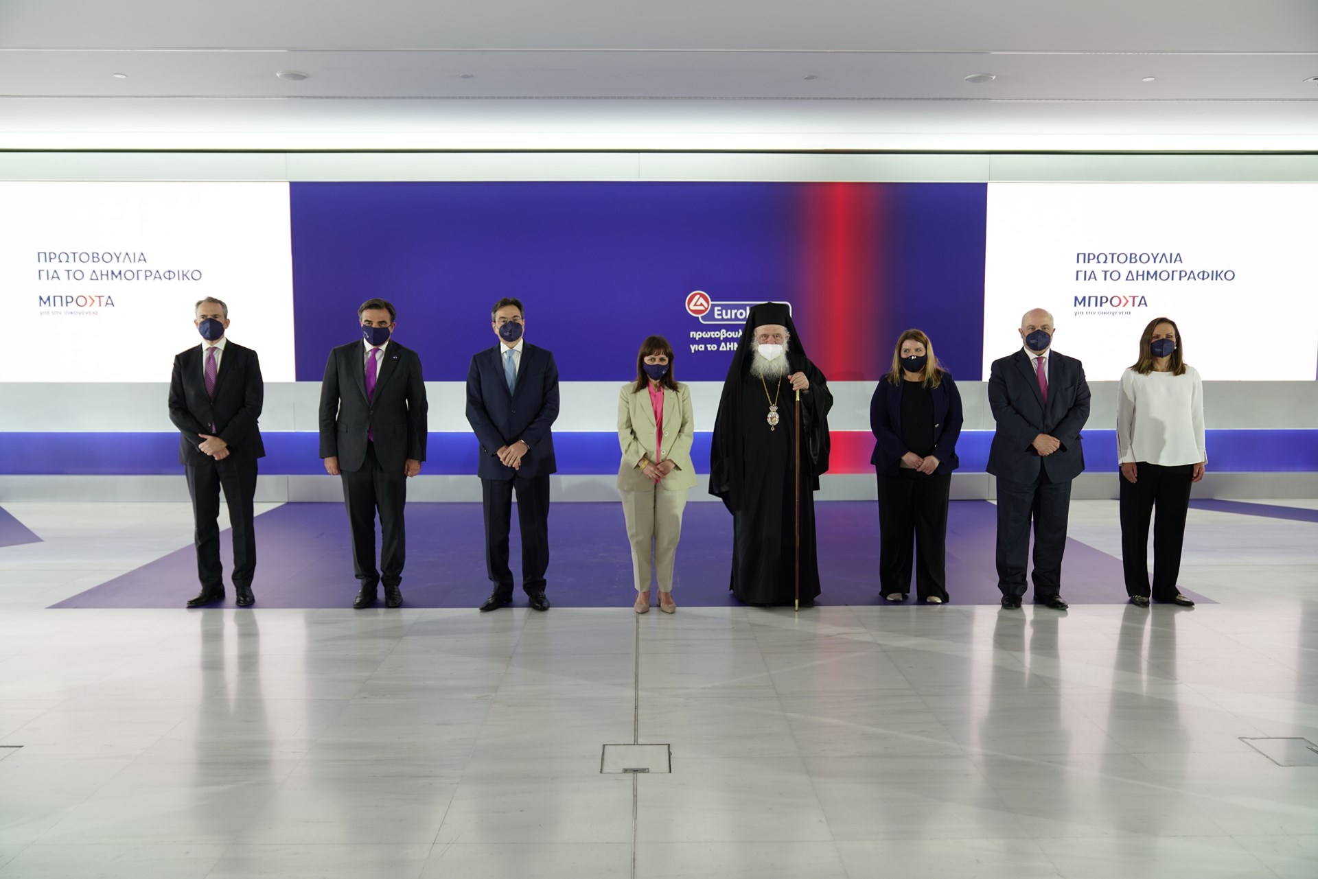 Η Πρωτοβουλία για το Δημογραφικό παρουσιάστηκε, σήμερα, σε ειδική εκδήλωση που διοργάνωσε η Τράπεζα, στο Φάρο του Κέντρου Πολιτισμού Ίδρυμα Σταύρος Νιάρχος (ΚΠΙΣΝ) και μεταδόθηκε διαδικτυακά, με ευρεία συμμετοχή. Εκτός από την Πρόεδρο της Δημοκρατίας παρέστησαν και απηύθυναν χαιρετισμό, ο Αρχιεπίσκοπος Αθηνών & Πάσης Ελλάδος, Ιερώνυμος Β’ και ο Αντιπρόεδρος της Ευρωπαϊκής Επιτροπής για την Προώθηση Ευρωπαϊκού Τρόπου Ζωής, κ. Μαργαρίτης Σχοινάς. Στην εκδήλωση παραβρέθηκε και απηύθυνε σύντομο χαιρετισμό η Υφυπουργός Εργασίας & Κοινωνικών Υποθέσεων, αρμόδια για θέματα Δημογραφικής Πολιτικής & Οικογένειας, κα Μαρία Συρεγγέλα, ενώ την πρωτοβουλία χαιρέτισε επίσης η Πρέσβειρα της Πρωτοβουλίας για το Δημογραφικό, κα Αιμιλία Τσουλφά, Χρυσή Ολυμπιονίκης στην Ιστιοπλοΐα.