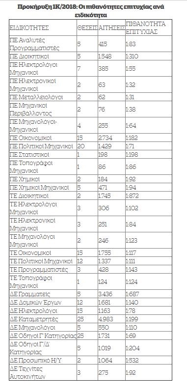 Προκαλούν ίλιγγο τα ποσοστά συμμετοχής και οι πιθανότητες επιτυχίας για τις θέσεις των 30 ειδικοτήτων.
