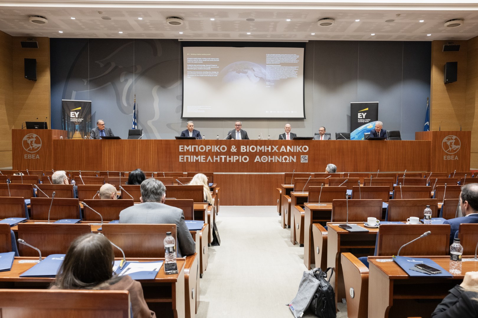 Τον εναρκτήριο χαιρετισμό απηύθυνε η Πρόεδρος του Εμπορικού και Βιομηχανικού Επιμελητηρίου Αθηνών, κυρία Σοφία Κουνενάκη Εφραίμογλου, σημειώνοντας ότι «οι ελληνικές επιχειρήσεις αγωνίστηκαν για πολλά χρόνια, με στόχο την επιβίωση. Σήμερα, η οικονομία έχει επιστρέψει σε θετική τροχιά. Η χώρα έχει ανακτήσει την επενδυτική βαθμίδα. Έχει διαμορφώσει ένα πιο σταθερό και γόνιμο για τις επενδύσεις περιβάλλον. Τώρα είναι η ώρα για τις ελληνικές επιχειρήσεις να κάνουν το μεγάλο άλμα μπροστά. Και σε αυτή την προσπάθεια, πρέπει να αξιοποιήσουμε έγκαιρα, σωστά και αποτελεσματικά, κάθε διαθέσιμο εργαλείο. Το ΕΒΕΑ είναι εδώ, λοιπόν, για να βοηθήσει, με την πολύτιμη συνεργασία της ΕΥ, αλλά και διακεκριμένων στελεχών της αγοράς».