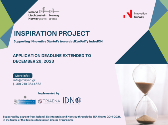 Το έργο INSPIRATION είναι ένα διεθνές έργο συνεργασίας που υποστηρίζεται από την Ισλανδία, το Λιχτενστάιν και τη Νορβηγία μέσω των “EEA Grants 2014-2021”, στο πλαίσιο του Προγράμματος “Business Innovation Greece”. Για την υλοποίηση του Έργου συμπράττουν το Εμπορικό και Βιομηχανικό Επιμελητήριο Αθηνών, η Triaena Synergies & Consulting και η International Development Norway.