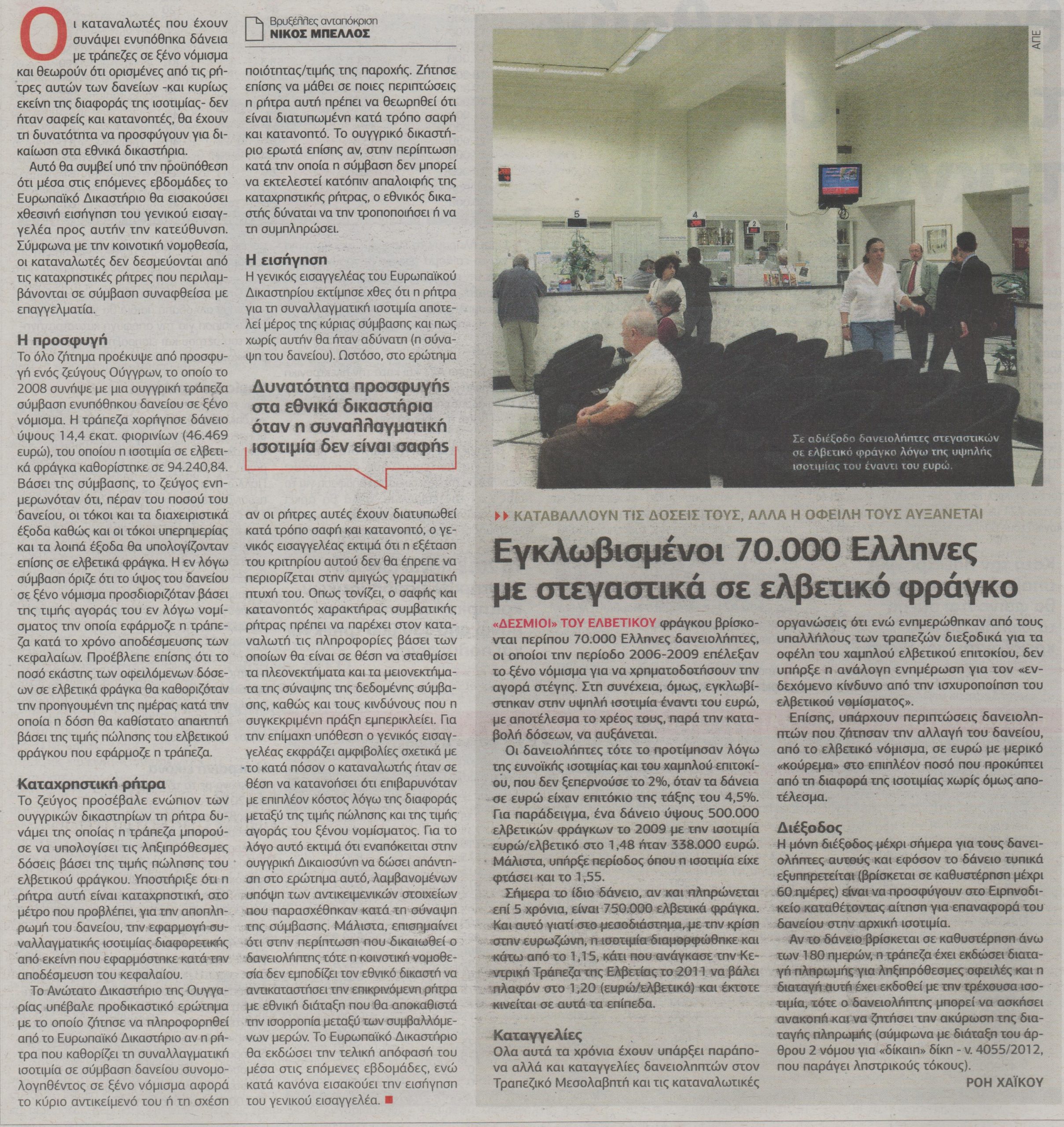 Οι καταναλωτές που έχουν συνάψει ενυπόθηκα δάνεια με τράπεζες σε ξένο νόμισμα και θεωρούν ότι ορισμένες από τις ρήτρες αυτών των δανείων –και κυρίως εκείνη της διαφοράς της ισοτιμίας-δεν ήταν σαφείς και κατανοητές, θα έχουν τη δυνατότητα να προσφύγουν για δικαίωση στα εθνικά δικαστήρια.