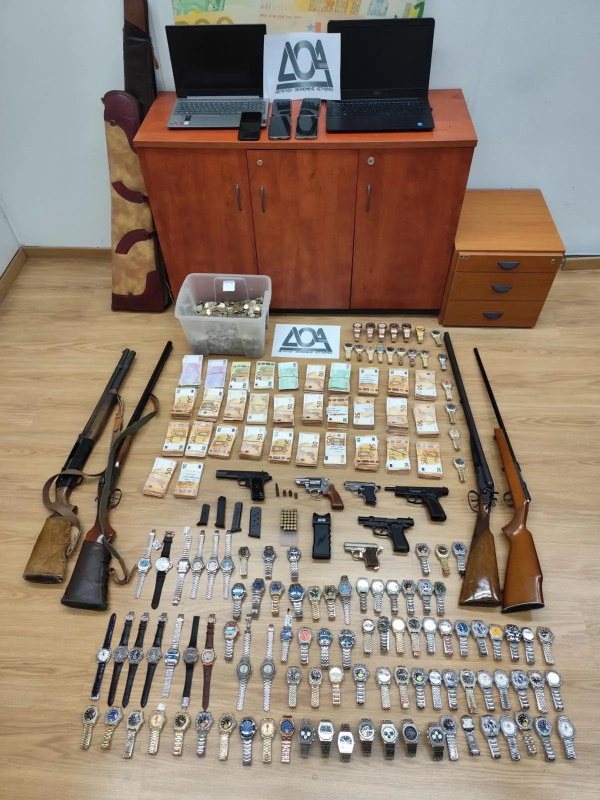 Τα κατασχεμένα ψηφιακά πειστήρια και όπλα θα αποσταλούν στη Διεύθυνση Εγκληματολογικών Ερευνών για εργαστηριακές εξετάσεις, οι ναρκωτικές ουσίες στην αρμόδια Χημική Υπηρεσία, το κατασχεθέν χρηματικό ποσό θα αποδοθεί στο Ταμείο Παρακαταθηκών και Δανείων, ενώ τα κατασχεμένα απομιμητικά ρολόγια καταστράφηκαν στο πλαίσιο διοικητικής διαδικασίας.