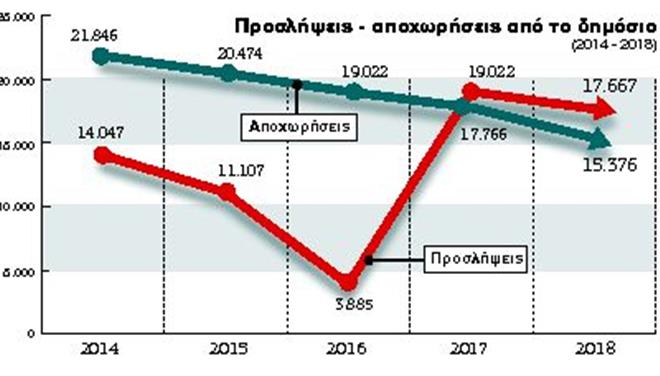 Σε 65.728 νέες προσλήψεις προβλέπεται να προχωρήσει το Δημόσιο από φέτος ως και το 2018, ενώ την ίδια περίοδο θα αποχωρήσουν συνολικά 94.363 δημόσιοι υπάλληλοι.