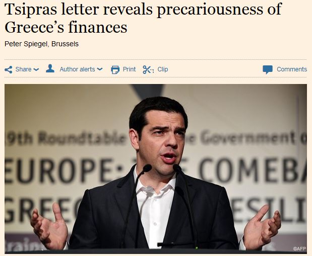 Το περιεχόμενο της επιστολής αυτής του κ. Τσίπρα αποκαλύφθηκαν από την κα Λαγκάρντ, στη συνεδρίαση κεκλεισμένων των θυρών του διοικητικού συμβουλίου του ταμείου, την Πέμπτη επισημαίνουν οι FT.
