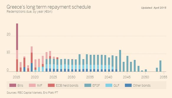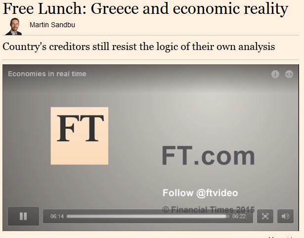 Οι πληρωμές δόσεων προς τους δανειστές βαραίνουν την Ελλάδα, ως μια οικονομία που δεν μπορεί ακόμα να σηκώσει κεφάλι, ιδιαίτερα μετά τις προβλέψεις της Κομισιόν για το ΑΕΠ και το χρέος. Αλλά αυτό βάρος εύκολα γυρνά στους δανειστές όταν η Ελλάδα πει δεν έχω χρήματα και προτιμώ να πληρώσω μισθούς και συντάξεις. Ο φόβος της στάσης πληρωμών βαραίνει την τρόικα, εκτιμά το σχόλιο στους FT.