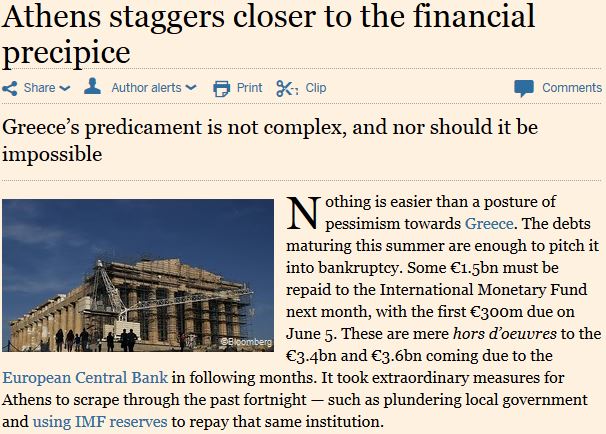 Αφού περιγράφει μια χώρα ως επιχείρηση, ανάλυση στην εφημερίδα Financial Times, αναφέρεται ξανά στην απόσταση που χωρίζει την Ελλάδα από την άβυσσο καλώντας να γεφυρωθεί το χάσμα πριν είναι πολύ αργά, επαναφέροντας το Grexit.