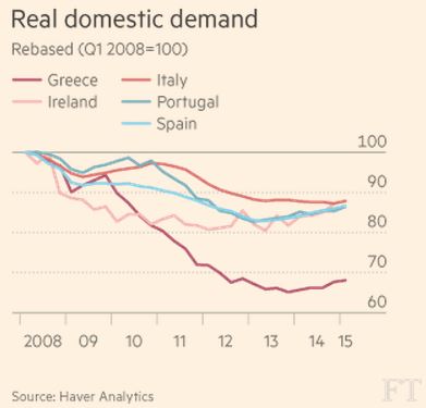 H ανευθυνότητα μπορεί να είναι οδυνηρό λάθος, αλλά οι Έλληνες το αντιμετώπισαν με οδυνηρό τρόπο. Όπως επισημαίνει ο Ιρλανδός οικονομολόγος Karl Whelan σε μια δριμεία κριτική στον κ. Giavazzi, η ελληνική οικονομία έχει υποφέρει μια τρομακτική κατάρρευση. Το ΑΕΠ έχει υποχωρήσει κατά 27%, ενώ οι πραγματικές δαπάνες στην οικονομία μειώθηκαν κατά ένα τρίτο.