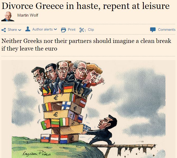 Όλο και περισσότεροι λένε φτάνει πια με την Ελλάδα, σχολιάζει ο Μάρτιν Γουλφ βασικός αρθρογράφος στους Financial Times, αλλά ο δρόμος του Grexit δεν είναι στρωμένος με ρόδα.