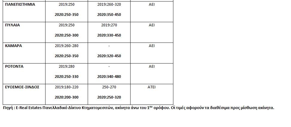 -Χαρακτηριστικό παράδειγμα αύξησης της ανώτατης τιμής μίσθωσης, αποτελεί η Πλ. Βικτωρίας όπου το 2019 η ζητούμενη τιμή μίσθωσης γκαρσονιέρας ήταν από 170€ έως 260€/μήνα, σήμερα, η ζητούμενη τιμή μίσθωσης (πλήρως ανακαινισμένη) κυμαίνεται από 280€ έως 350€/μήνα .