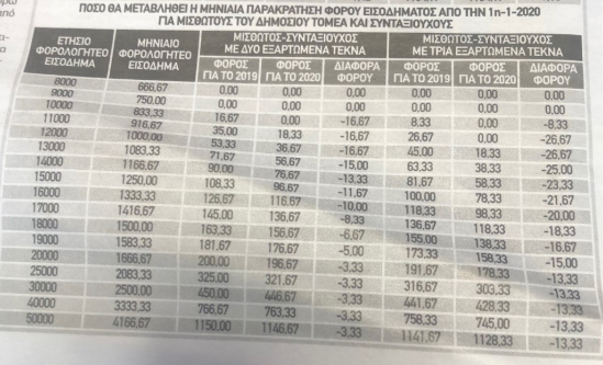 -από 2.100 σε 1.120 ευρώ για κάθε φορολογούμενο με τρία εξαρτώμενα τέκνα