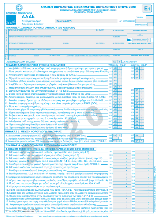 Διαβάστε αναλυτικά την απόφαση για το καινούριο έντυπο Ε1 για τα φυσικά πρόσωπα ΕΔΩ