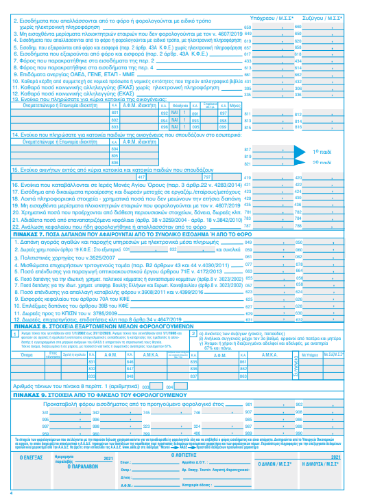 3.Συμπληρώνουν τα έντυπα Ε2 και Ε3 εφόσον υπάρχει υποχρέωση. Η σύζυγος υποβάλει τα συνυποβαλλόμενα έντυπα με τους δικούς της κωδικούς πρόσβασης.