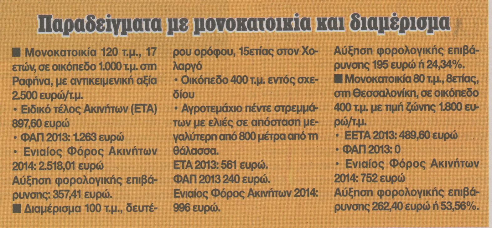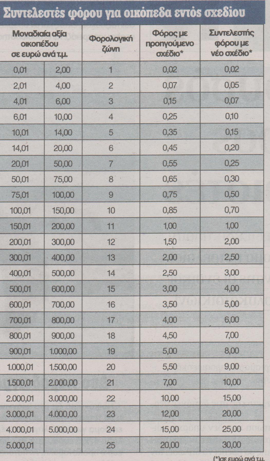 Φόρος ακινήτων-αναλυτικοί πίνακες