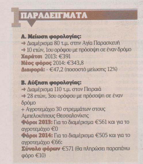 Φόρος-ενοίκιο σε όλη την Ελλάδα-Πίνακες και παραδείγματα
