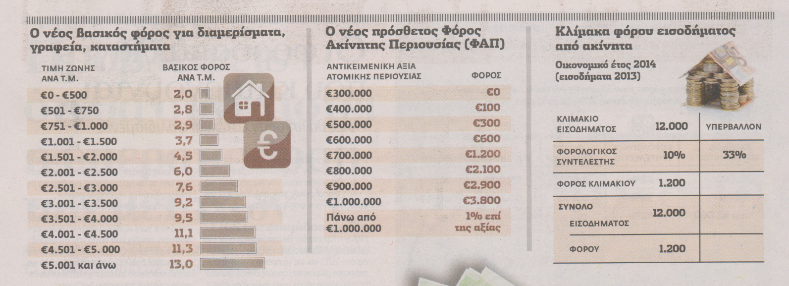 – Φόρος 2 ευρώ έως 23 ευρώ ανά τετραγωνικό ανάλογα με την τιμή ζώνης που βρίσκεται το ακίνητο