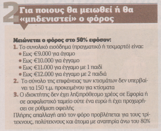 – Επιβάλλεται φόρος σε κάθε διαμέρισμα, γραφείο, κατάστημα, οικόπεδο, χωράφι, από το 1ο τετραγωνικό χωρίς αφορολόγητο