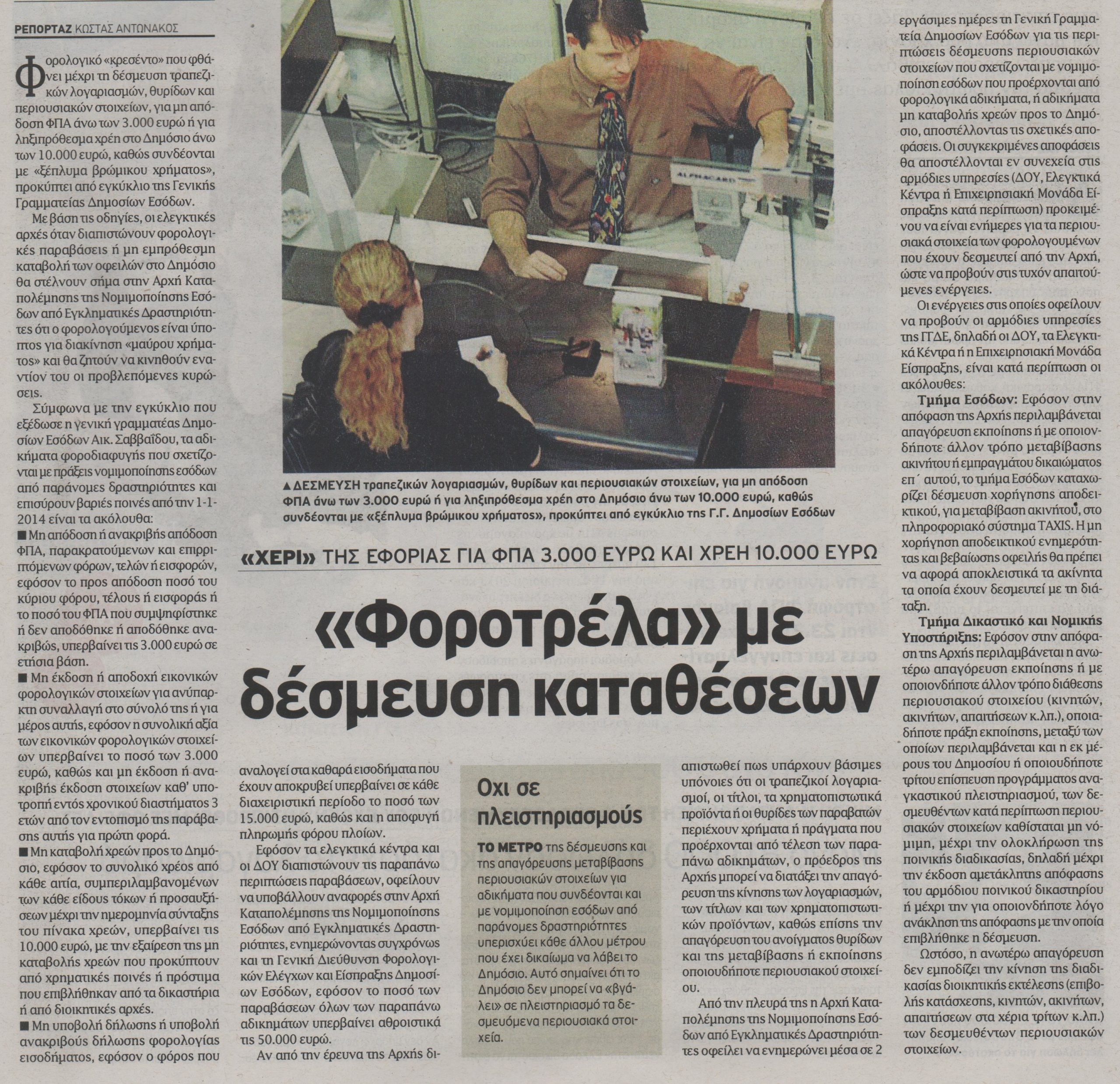 “Φοροτρέλα” με δέσμευση καταθέσεων