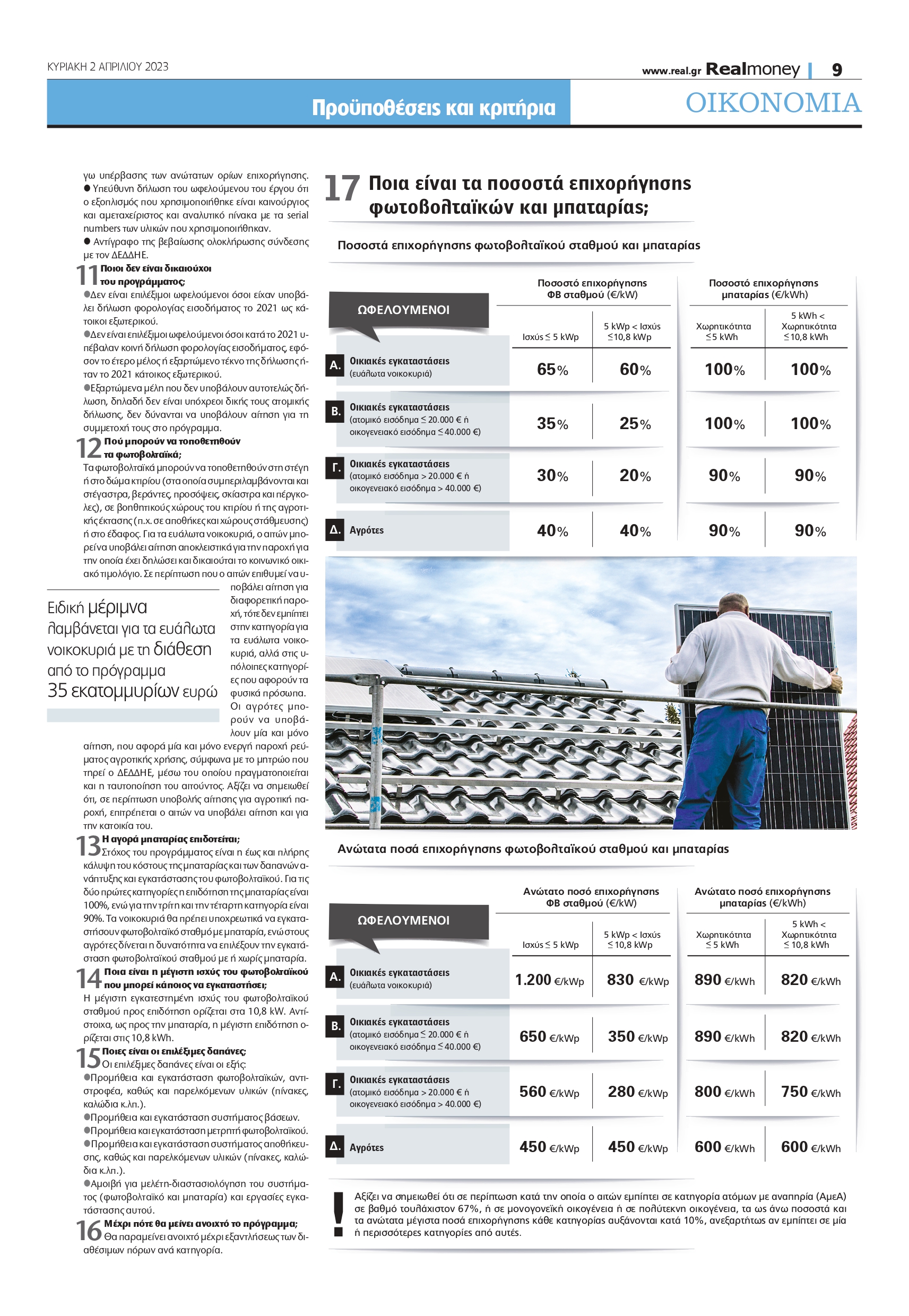 17. Ποια είναι τα ποσοστά επιχορήγησης φωτοβολταϊκών και μπαταρίας;