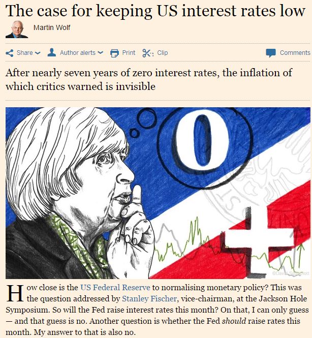Οπότε πρέπει να αναμένουμε αύξηση των επιτοκίων αυτόν τον μήνα; Για το ζήτημα αυτό μόνο υποθέσεις μπορώ να κάνω και η υπόθεση μου είνα πως δεν θα τα αυξήσει. Ενα άλλα ερώτημα είναι αν η Fed θα έπρεπε να αυξήσει τα επιτόκια αυτόν τον μήνα. Η απάντηση μου είναι και πάλι όχι.