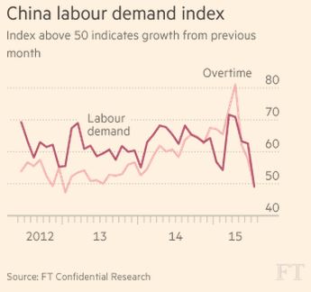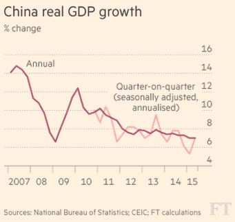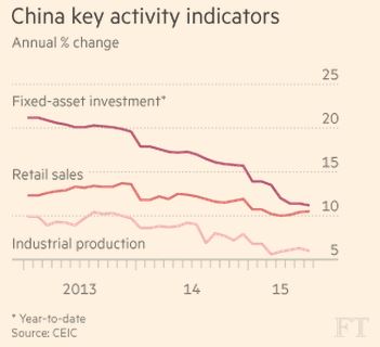 Οι πάγιες επενδύσεις αναπτύχθηκαν με το βραδύτερο ρυθμό από το 2000 κατά τους πρώτους επτά μήνες του 2015, με αιχμή την κατάρρευση των επενδύσεων σε ακίνητα. Η παραγωγή στα εργοστάσια τον Ιούλιο ήταν επίσης ελάχιστα πάνω από το χαμηλότερο σημείο των τελευταίων τεσσάρων ετών που έπεσε το Μάρτιο.