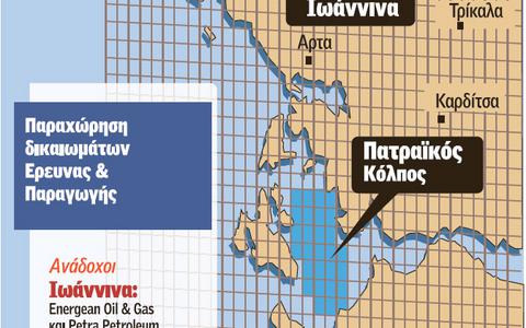 • Στη χερσαία ζώνη βόρεια των Ιωαννίνων θα απαιτηθεί υψηλού κόστους έρευνα, σε βάθος 4.000 μέτρων. Σύμφωνα με ορισμένες εκτιμήσεις τα αποθέματα μπορεί να φθάνουν μέχρι και τα 100 εκατ. βαρέλια απολήψιμου πετρελαίου. Προηγούμενη ερευνητική γεώτρηση στις αρχές της δεκαετίας του 2000 δεν κατέληξε, αφού διακόπηκε πριν προχωρήσει σε μεγάλο βάθος. Μετά την ανακάλυψη πετρελαίου στη γειτονική Αλβανία και την τεχνολογική εξέλιξη που καθιστά πιο εύκολη της έρευνα, αναζωπυρώθηκε το ενδιαφέρον για το μπλοκ των Ιωαννίνων. Η έρευνα θα ξεκινήσει με απεικόνιση από αέρος, με ειδικά εξοπλισμένο αεροσκάφος για να προχωρήσει στα 3 D σεισμικά και στις γεωτρήσεις. Το αρχικό κόστος της επένδυσης υπολογίζεται σε 32 εκατ. ευρώ και βάσει της συμφωνίας που θα υπογραφεί την Τετάρτη, ο ανάδοχος Energean /Petra Petroleum θα πρέπει εντός επτά ετών να έχει ολοκληρώσει τις γεωτρήσεις, εφόσον βέβαια η πρώτη ερευνητική φάση είναι θετική.