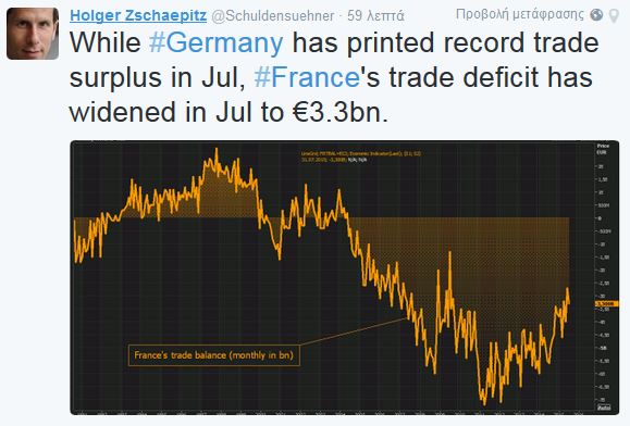 Το εμπορικό πλεόνασμα έφτασε σε ρεκόρ, ωστόσο την ίδια ώρα διευρύνθηκε το εμπορικό έλλειμμα της Γαλλίας, καταδεικνύοντας τις διαφορετικές ταχύτητες στην ευρωζώνη που κρατιέται στο χείλος της ύφεσης χάρη στη Γερμανία.