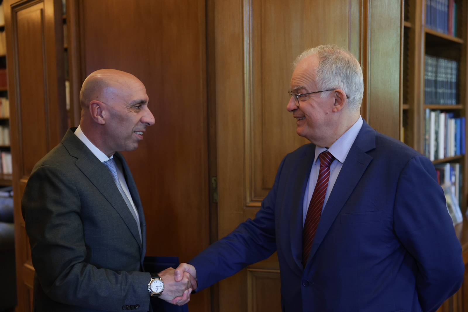 Ο Πρόεδρος του Εμπορικού και Βιομηχανικού Επιμελητηρίου Αθηνών (ΕΒΕΑ), κ. Γιάννης Μπρατάκος, συναντήθηκε σήμερα με τον Πρόεδρο της Ελληνικής Δημοκρατίας, κ. Κωνσταντίνο Τασούλα, στον οποίο παρέδωσε ένα ολοκληρωμένο υπόμνημα με τις βασικές θέσεις και προτάσεις του ΕΒΕΑ για την ανασυγκρότηση και τον παραγωγικό μετασχηματισμό της ελληνικής οικονομίας, επιβεβαιώνοντας τον θεσμικό ρόλο του Επιμελητηρίου ως συμβούλου της Πολιτείας σε θέματα επιχειρηματικότητας και ανάπτυξης.