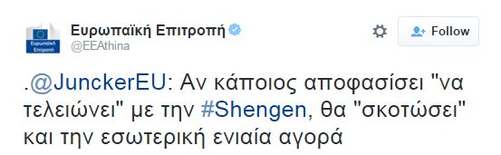 Η Σένγκεν είναι ένα από μεγαλύτερα επιτεύγματά μας, τόνισε ο πρόεδρος της Ευρωπαϊκής Επιτροπής Ζαν Κλοντ Γιούνκερ, επισημαίνοντας μάλιστα ότι το ευρώ και η Σένγκεν συνδέονται.