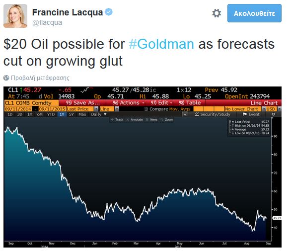 Η Goldman αναθεώρησε πτωτικά και τις εκτιμήσεις της για το πετρέλαιο μπρεντ στα 53,70 δολάρια από τα 58,20 δολάρια για το 2015 και στα 49,50 δολάρια από τα 62 δολάρια για το 2016.