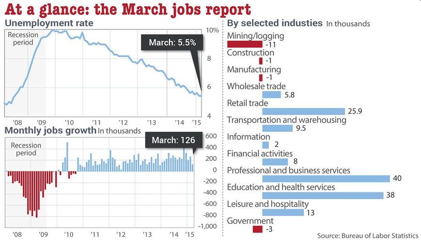 Η αμερικανική οικονομία δημιούργησε τον Μάρτιο τις λιγότερες νέες θέσεις εργασίας από τον Δεκέμβριο του 2013, γεγονός που αποτελεί μία ακόμη ένδειξη της αδυναμίας της και μίας πιθανής καθυστέρησης της αναμενόμενης αύξησης των επιτοκίων από τη Fed.