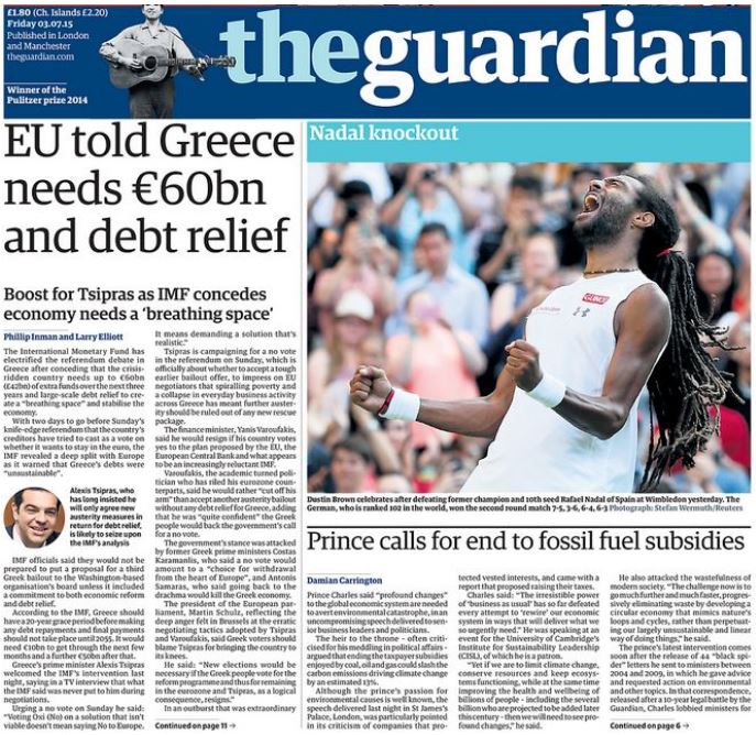 Το ΔΝΤ «ρίχνει το γάντι» στην Ευρώπη αναφέροντας σε έκθεσή του πως το ελληνικό χρέος δεν είναι βιώσιμο, λίγες ώρες πριν το δημοψήφισμα της Ελλάδας το οποίο για τους δανειστές σημαίνει διαμονή ή έξοδος της χώρας από το ευρώ.