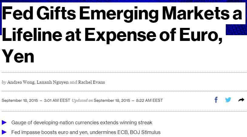 Ως εκ τούτου επιβεβαιώθηκαν οι εκτιμήσεις εκείνης της μερίδας αναλυτών που είχαν προβλέψει ότι η πρόεδρος της FED Τζάνετ Γέλεν θα προτιμούσε να αναβάλει την πολυσυζητημένη αύξηση των βασικών επιτοκίων εξαιτίας των πρόσφατων σοβαρών αναταράξεων στις κινεζικές χρηματαγορές, αλλά και των ανησυχιών για την κατάσταση της παγκόσμιας οικονομίας και ειδικότερα για τις οικονομικές εξελίξεις στις χώρες με αναδυόμενες οικονομίες.