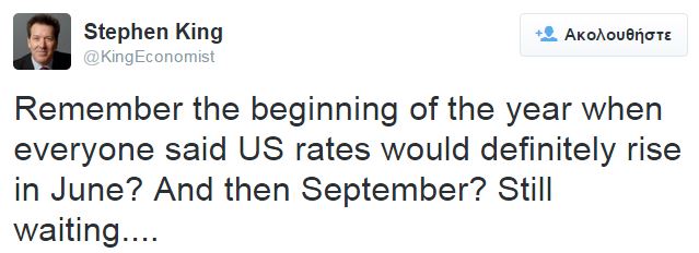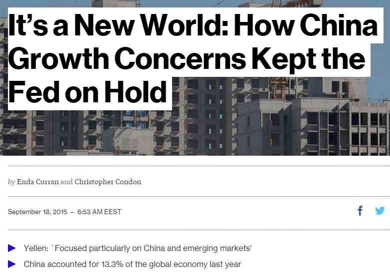 Υπό αυτό το πρίσμα η FED δείλιασε να προχωρήσει σε αύξηση επιτοκίων μπροστά στις ανησυχίες να πυροδοτήσει αναταράξεις διεθνώς αυξάνοντας το κόστος δανεισμού, το κόστος του χρήματος, βάζοντας τέλος στο «δωρεάν χρήμα» που… στηρίζει τις αγορές έως τώρα μετά την κρίση που ξέσπασε το 2007-8.
