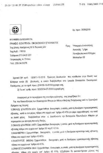 Το έγγραφο του Εισαγγελέα Οικονομικού Εγκλήματος: