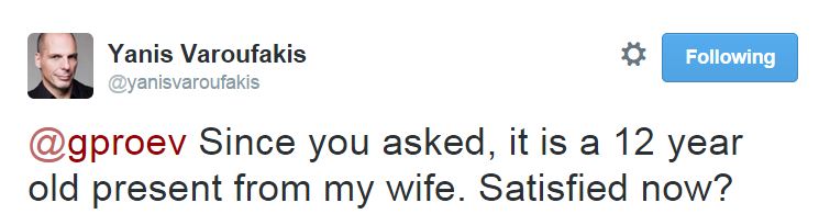 Λίγη ώρα αργότερα ο Γιάνης Βαρουφάκης του απάντησε: