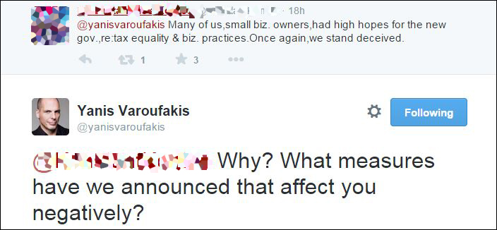Το “παράπονό” του στον υπουργό Οικονομικών Γιάνη Βαρουφάκη εξέφρασε ένας μικρομεσαίος επιχειρηματίας μέσα από το twitter.