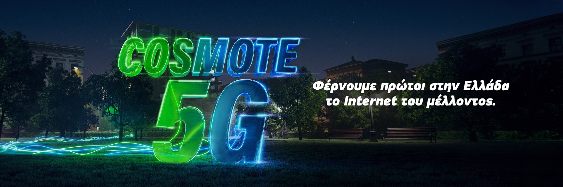 Η COSMOTE φέρνει πρώτη στην Ελλάδα το μέλλον των τηλεπικοινωνιών, προχωρώντας στην εμπορική διάθεση δικτύου 5G σε Αθήνα, Θεσσαλονίκη κι άλλες πόλεις στην Ελλάδα, ενώ σε συγκεκριμένες περιοχές οι μέγιστες ταχύτητες αγγίζουν ή και ξεπερνούν το 1Gbps. Πρωτοπορώντας για μια ακόμη φορά, η COSMOTE εξελίσσει το μεγαλύτερο δίκτυο κινητής στην Ελλάδα για να προσφέρει πρώτη στους συνδρομητές της υπηρεσίες 5ης γενιάς, δημιουργώντας νέες προοπτικές για την ψηφιακή ανάπτυξη της χώρας.