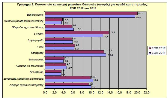 Αναλυτικά, τα στοιχεία της ΕΛΣΤΑΤ στην “Έρευνα Οικογενειακών Προϋπολογισμών 2012” έχουν ως εξής: