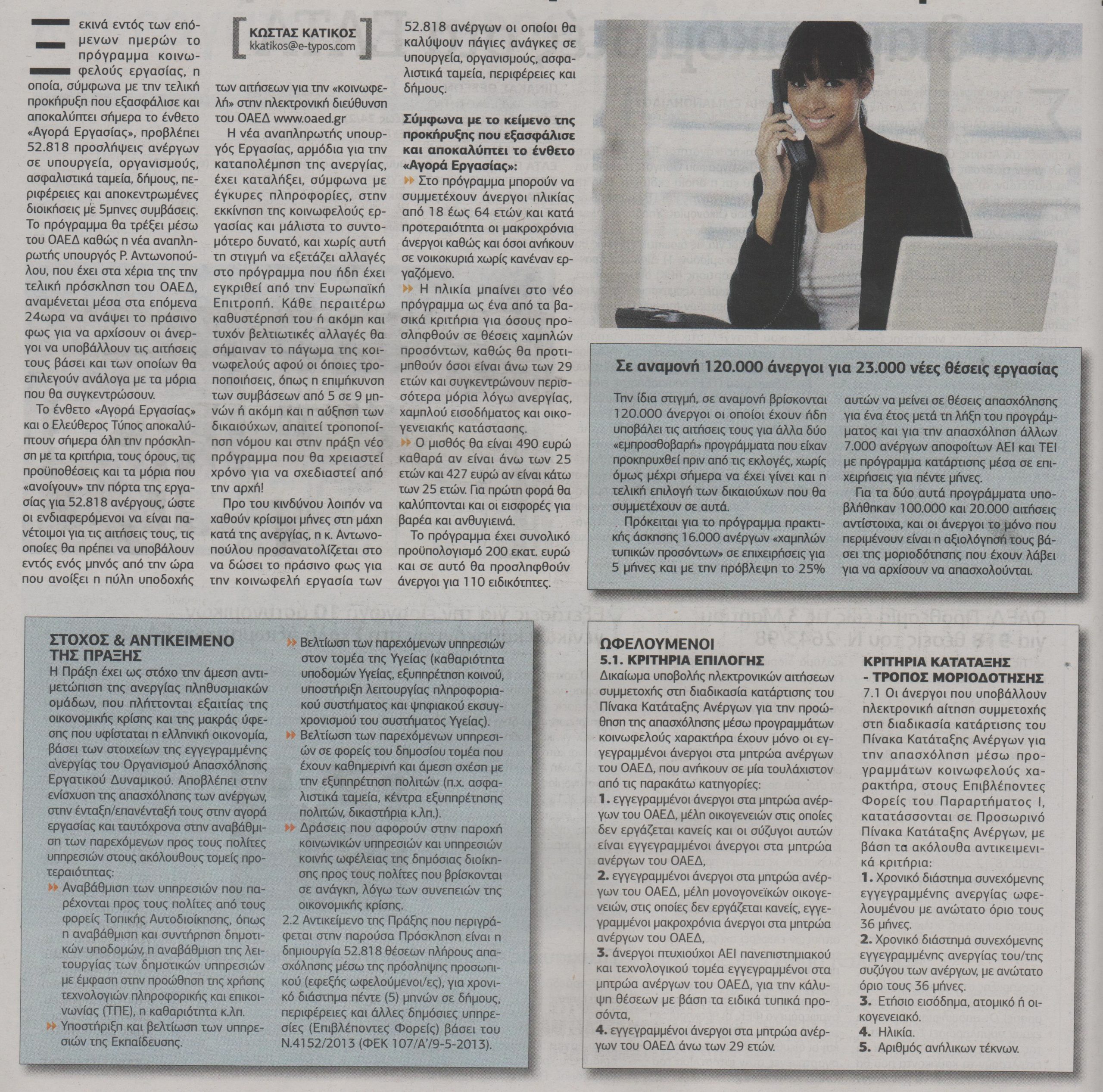 Συνολικά θα προσληφθούν 52.818 άνεργοι σε υπουργεία, οργανισμούς, ασφαλιστικά ταμεία, δήμους, περιφέρειες και αποκεντρωμένες διοικήσεις με 5μηνες συμβάσεις.