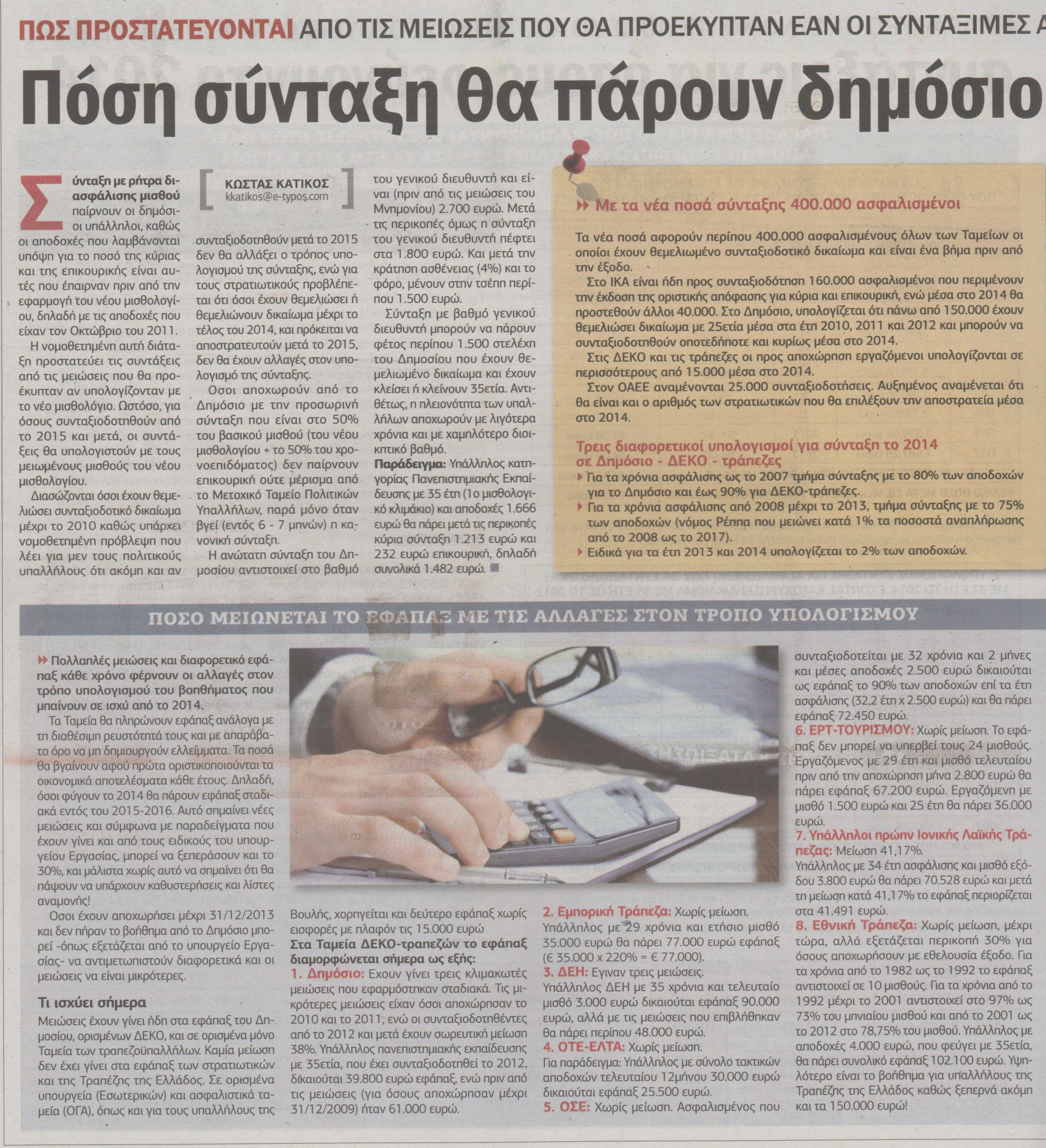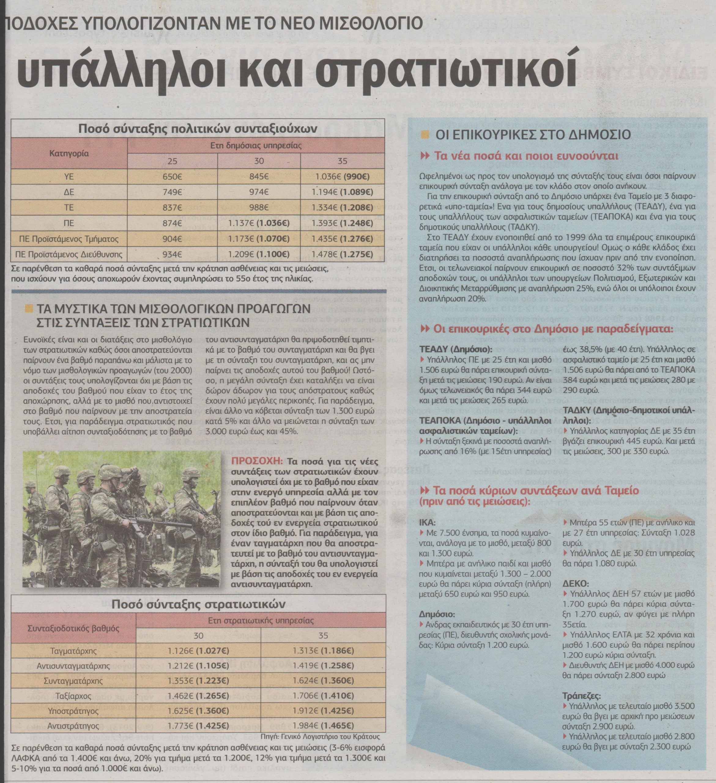 Η σύνταξη που θα πάρουν δημόσιοι υπάλληλοι και στρατιωτικοί-Πίνακες