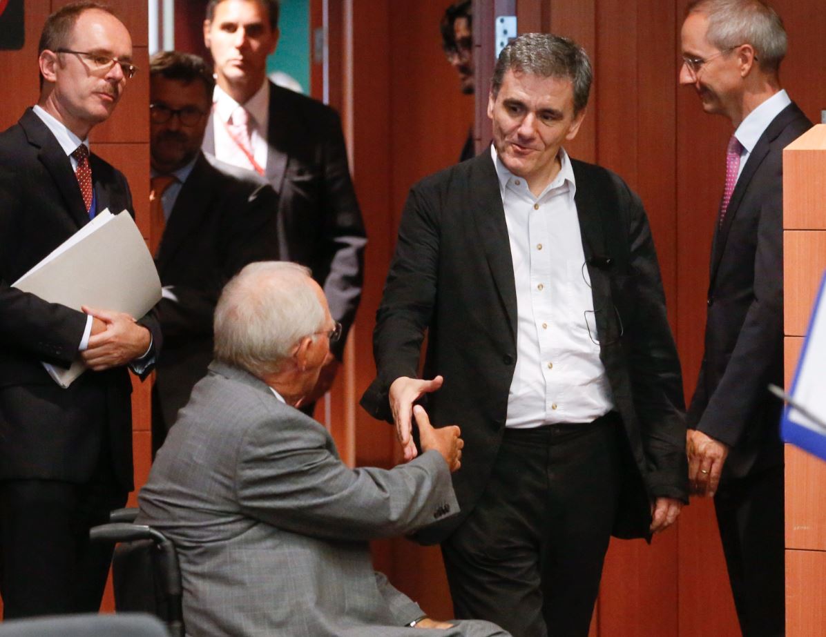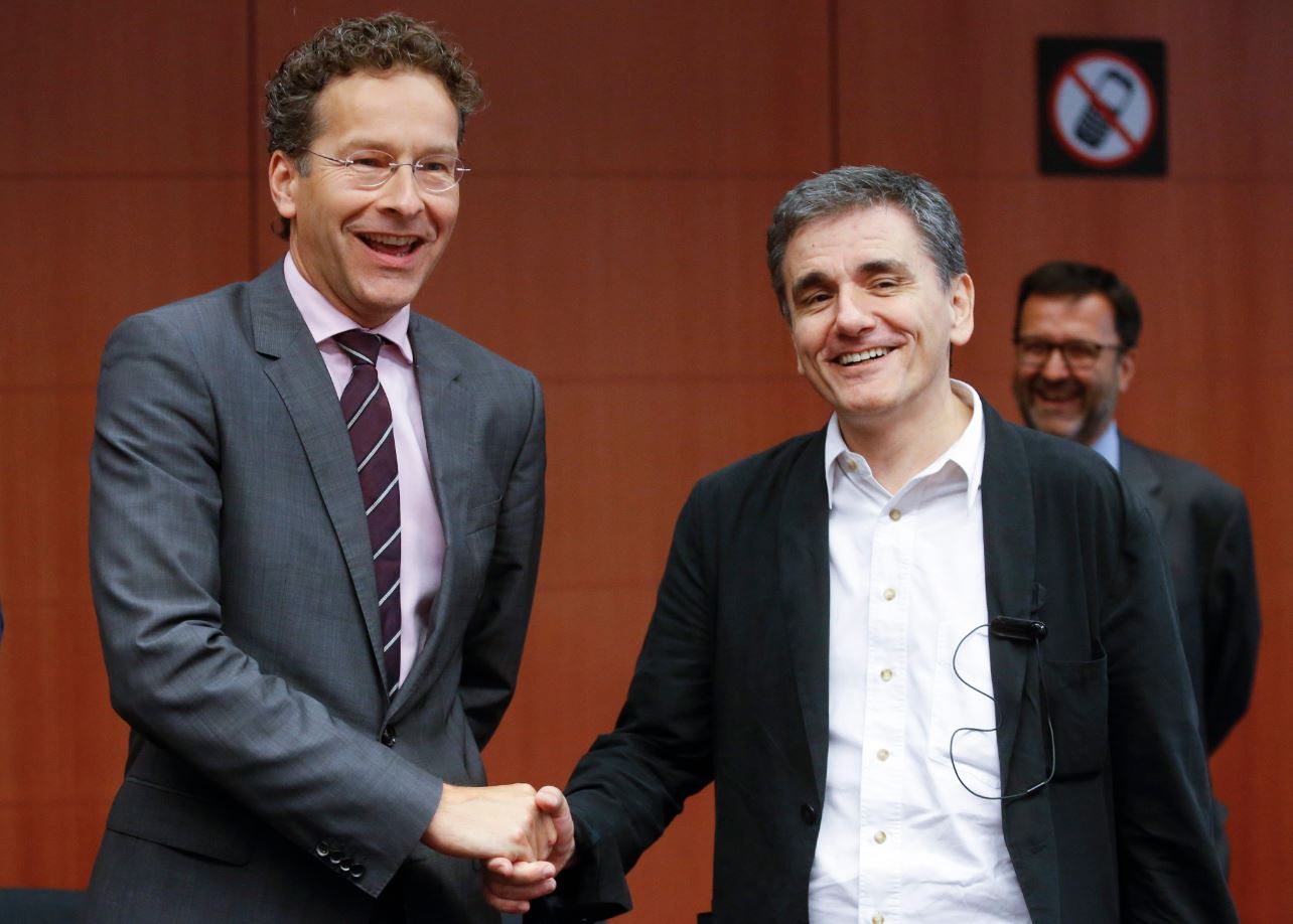 Ο Έλληνας υπουργός Οικονομικών, Ευκλείδης Τσακαλώτος, αντάλλαξε χειραψίες με τον Γερμανό ομόλογο του, Βόλφγκανγκ Σόιμπλε και τον επικεφαλής του Eurogroup, Γερούν Ντάισελμπλουμ, ενώ, όπως φαίνεται και στις φωτογραφίες, δεν έλειψαν και τα χαμόγελα.